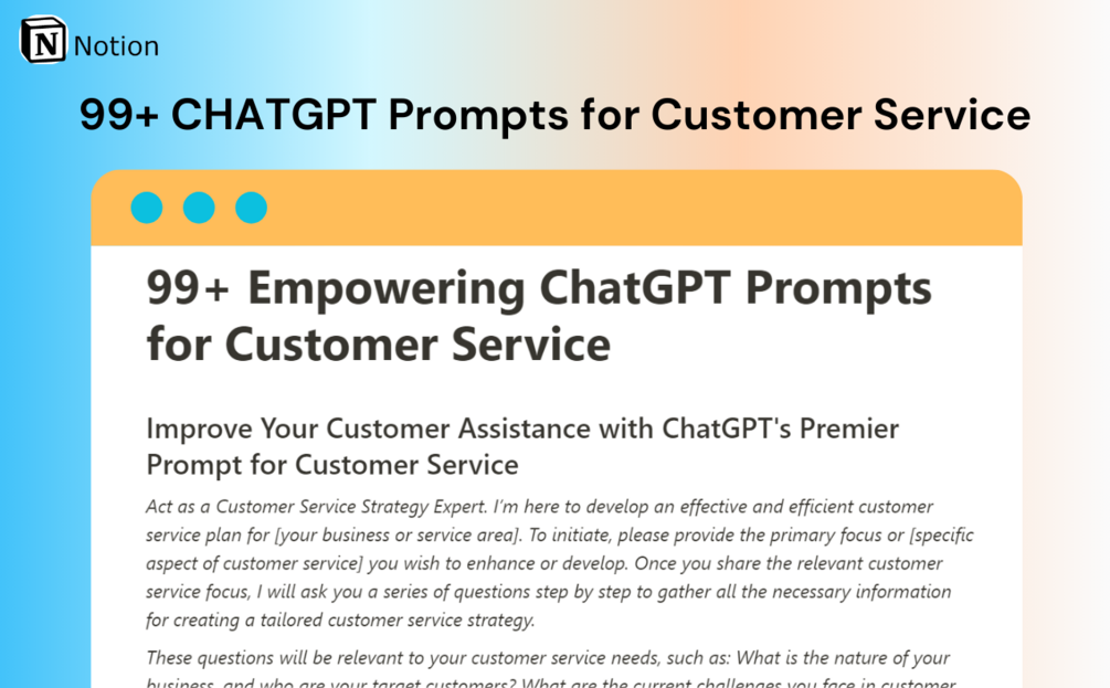 From enhancing customer interactions to solving queries with ease, ChatGPT Prompts for Customer Service empowers your team to deliver exceptional support, streamline communication, and create memorable service experiences.