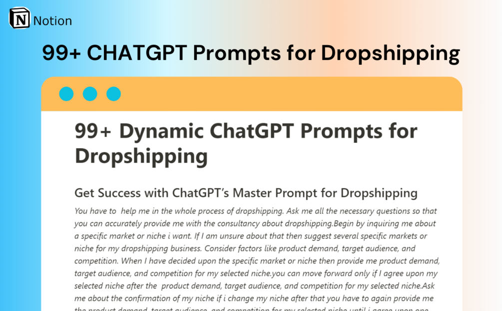 Perfect for e-commerce entrepreneurs, marketers, and online business owners, ChatGPT Prompts for DropShipping streamlines the process of crafting compelling Online Stores, catering to those seeking a boost in their online sales strategy.