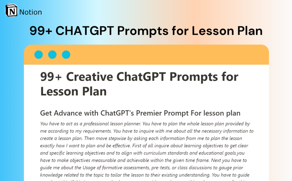 From crafting engaging lesson plans to devising creative teaching strategies, these prompts empower you to streamline your planning process, and effortlessly create effective educational strategies.