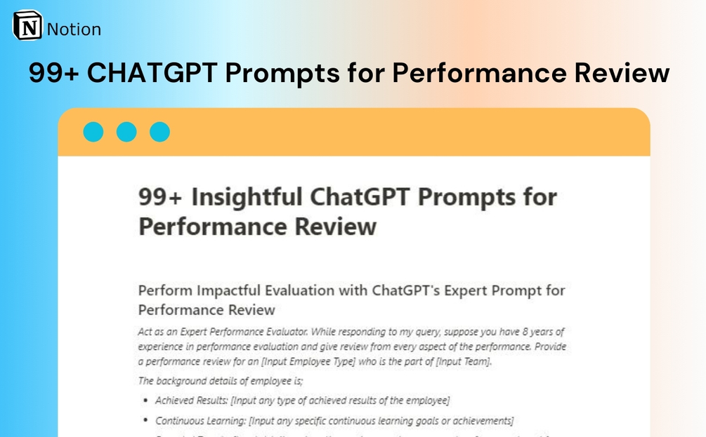 With ChatGPT Prompts for Performance Review, simplify your evaluation tasks efficiently. Save Time!