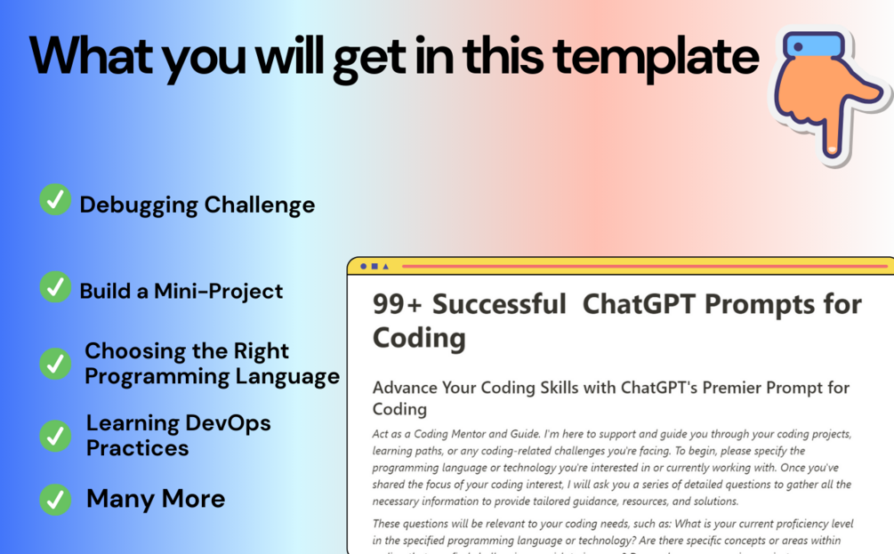 - Is there ongoing support and updates for these prompts?Yes, expect continuous updates and support to ensure that our prompts remain current, relevant, and effective in helping you stay ahead in your coding journey.