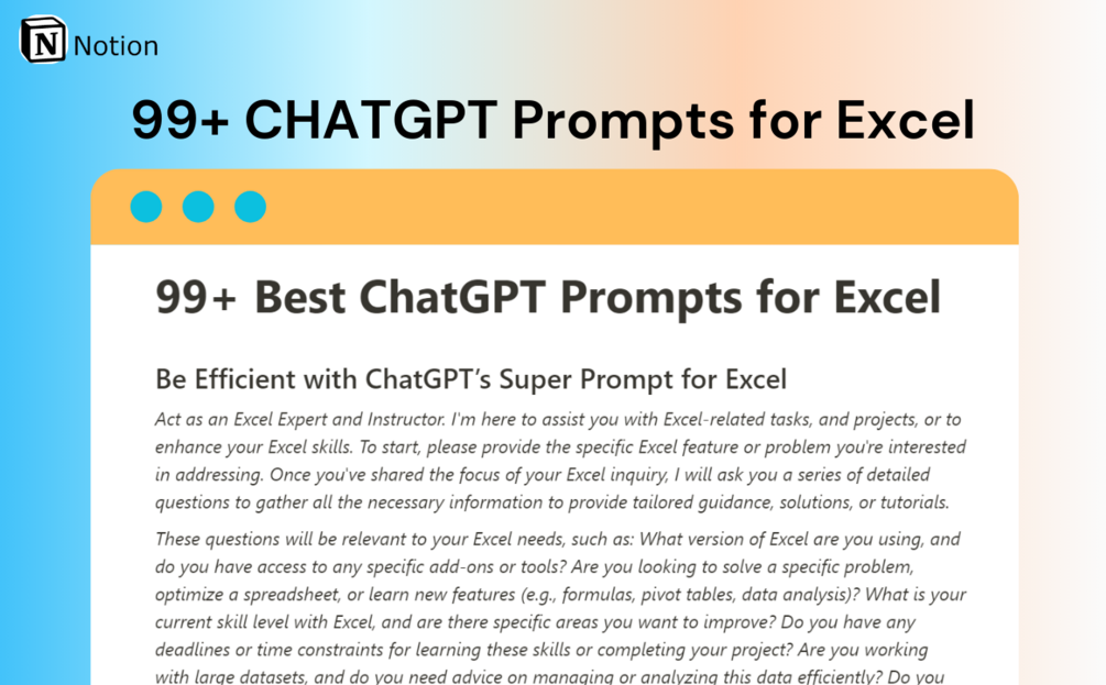 ππ’π99+ High in Demand ChatGPT Prompts for Excel - Transform Your Excel Sheet into a Powerful Tool