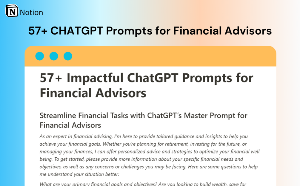 Make every conversation count with ChatGPT Prompts for Financial Advisors!